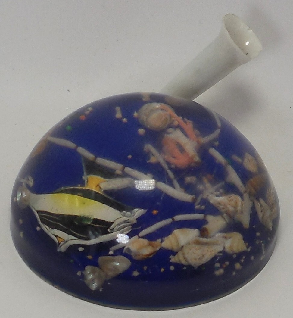 - 青い色がきれいな スノードーム タイプ ペン立て エンゼルフィッシュ snow globe 昭和レトロ