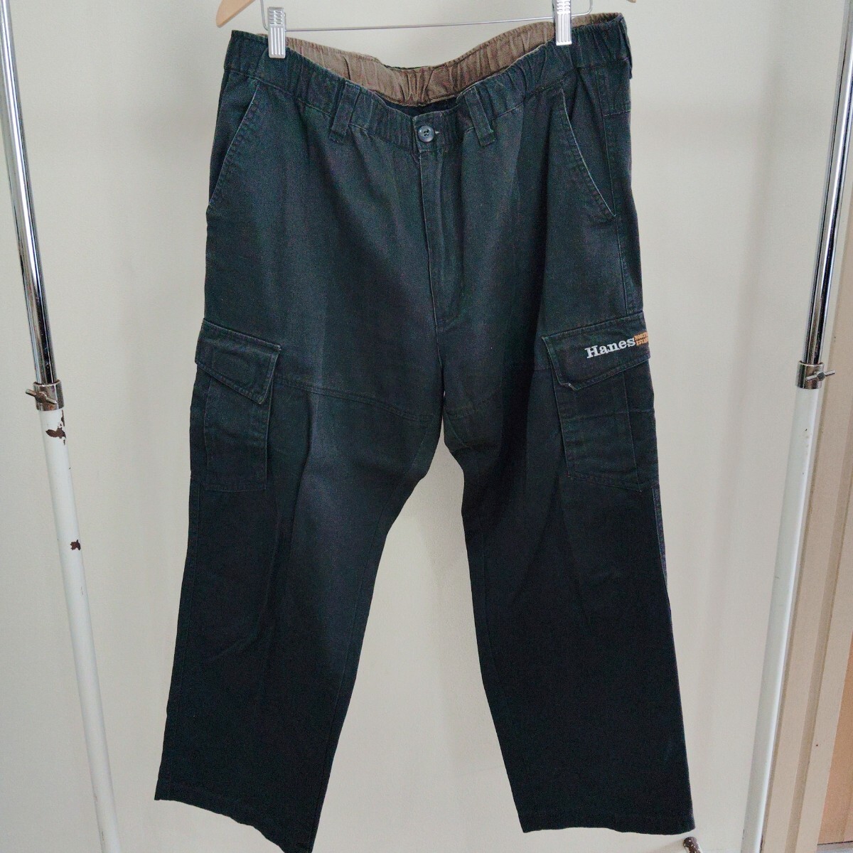 - 0908/3L/Hanes メンズ カーゴパンツ ワークパンツ 黒