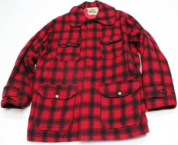 ★商品説明アメリカで買い付けましたUSEDの70年代頃のWOOLRICHのハンターコートウールジャケットの赤黒チェックで内装はナイロンキルティング柄入りで後もポケット装備です。