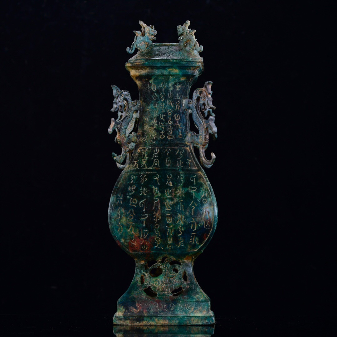 > 『館蔵珍品 戦漢 青銅製 銘文方瓶 青銅器 置物 賞物』稀少珍蔵品 古賞物 貴重物品 収蔵品 中国古美術 時代物 古董品