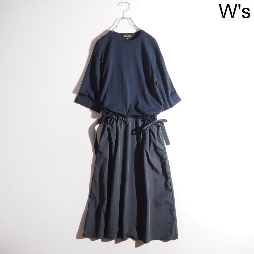 > P1776P ▼Drawer ドゥロワー▼ 24SS タフタコンビ ワンピース ネイビー 2 / 6526-199-1445 切り替え ハーフスリーブ ドレス 春夏 rb mks