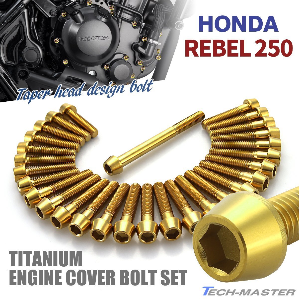 - レブル250 REBEL エンジンカバー クランクケース ボルト 28本セット チタン製 テーパーヘッド ホンダ車用 ゴールドカラー JA6903