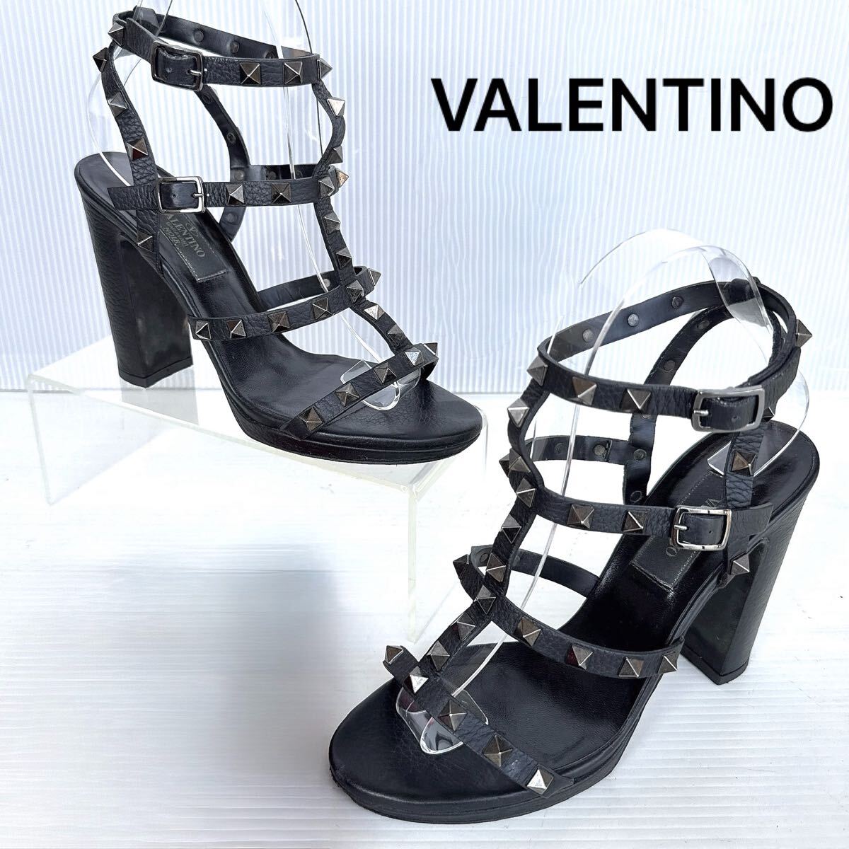 > VALENTINO GARAVANI ヴァレンティノガラヴァニー ロックスタッズ ストラップ 太ヒール サンダル パンプス レーディス 36.5 靴 シューズ 黒