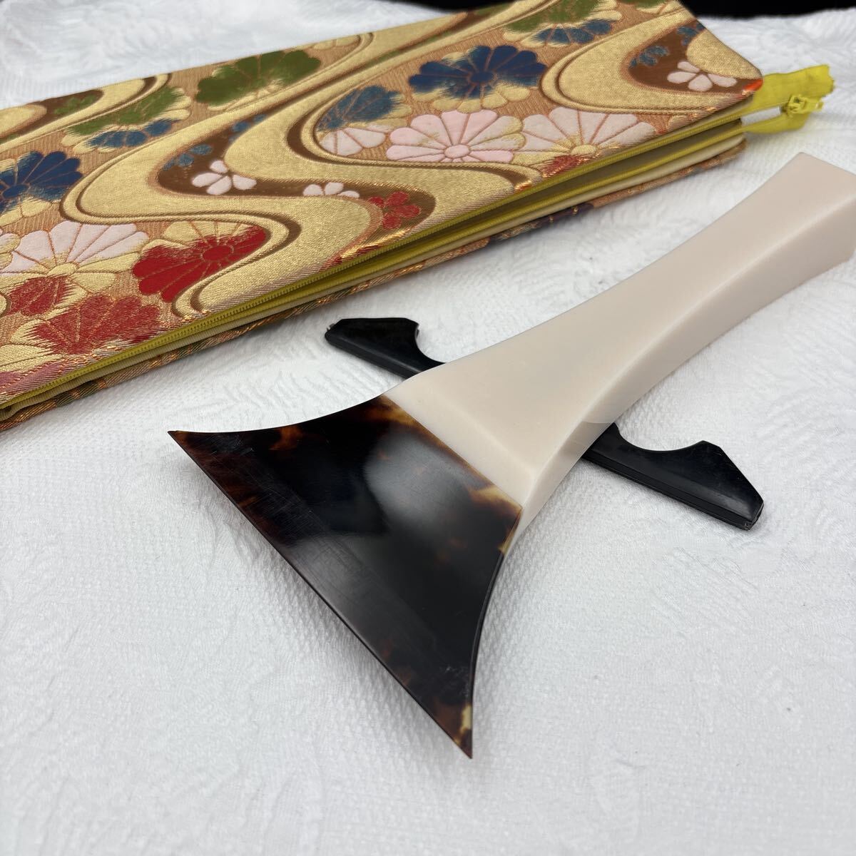- 三味線撥 高級和装小物収納ケース付き 長さ約23.3cm /開き約12cm /重量約200g 三味線小物 バチ No.1002