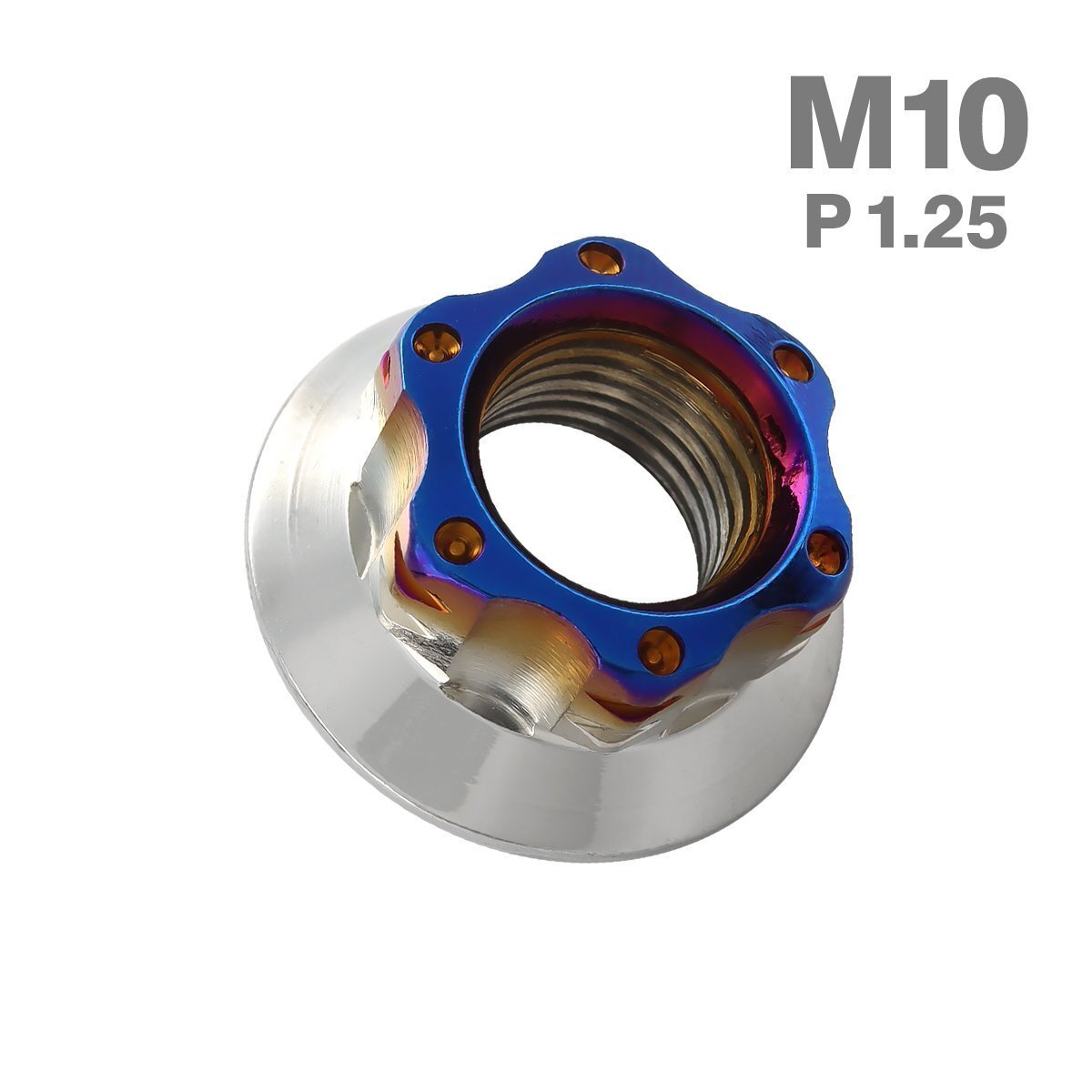 - M10 P1.25 六角ナット フランジ付き スターホール ステンレス シルバー×ブルー カウル エンジン 車 バイク カスタム 1個 TF0125