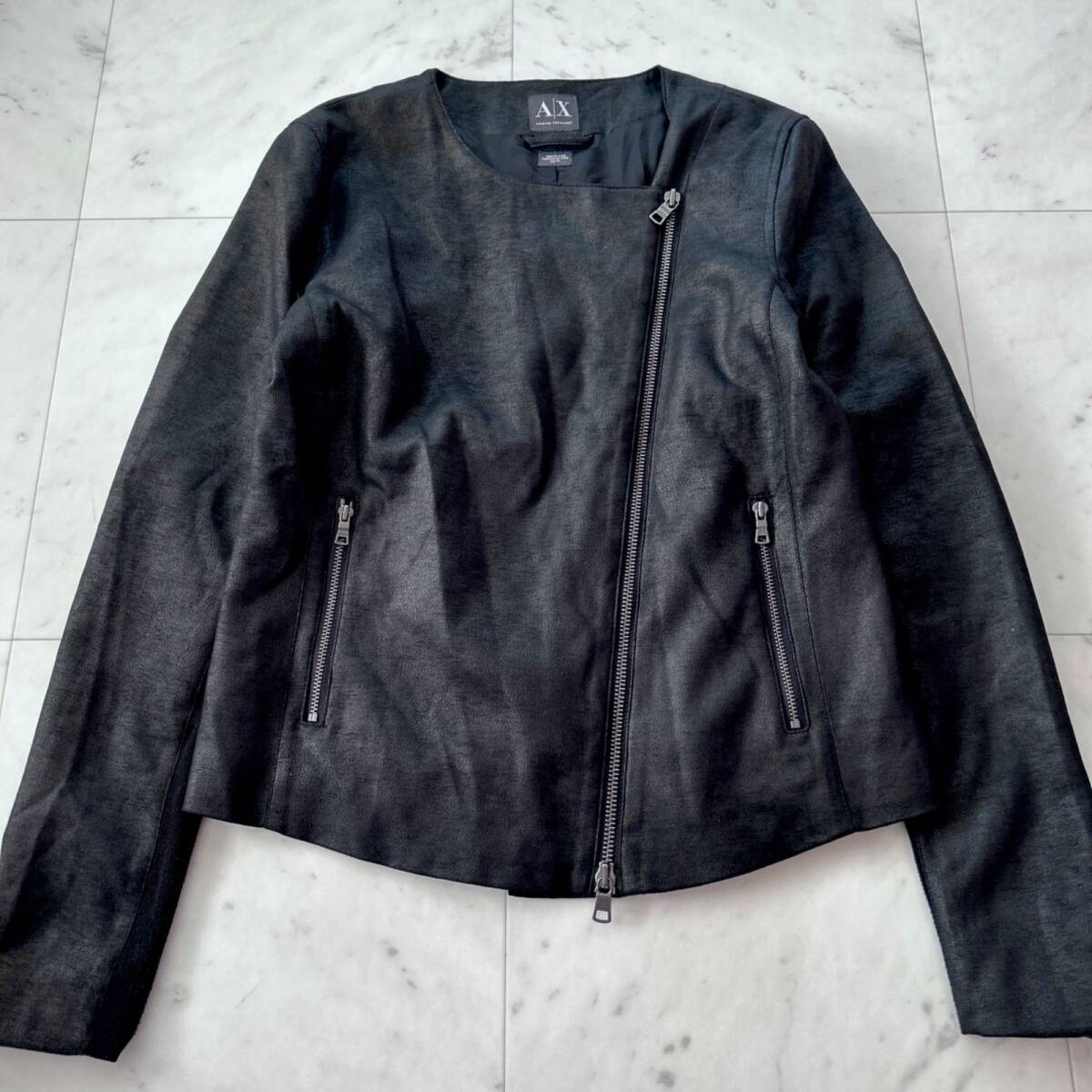 - アルマーニエクスチェンジ ライダースジャケット XS ブラック スウェード調 合皮