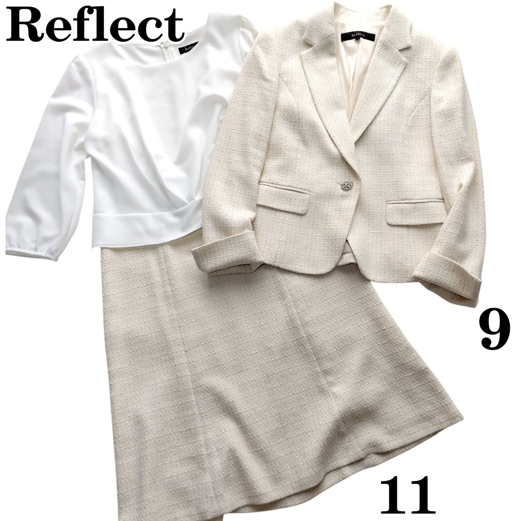 - リフレクト ラメツイード セットアップワンピ―ススーツ 9 11 白 Reflect 入学式 七五三 250721-02