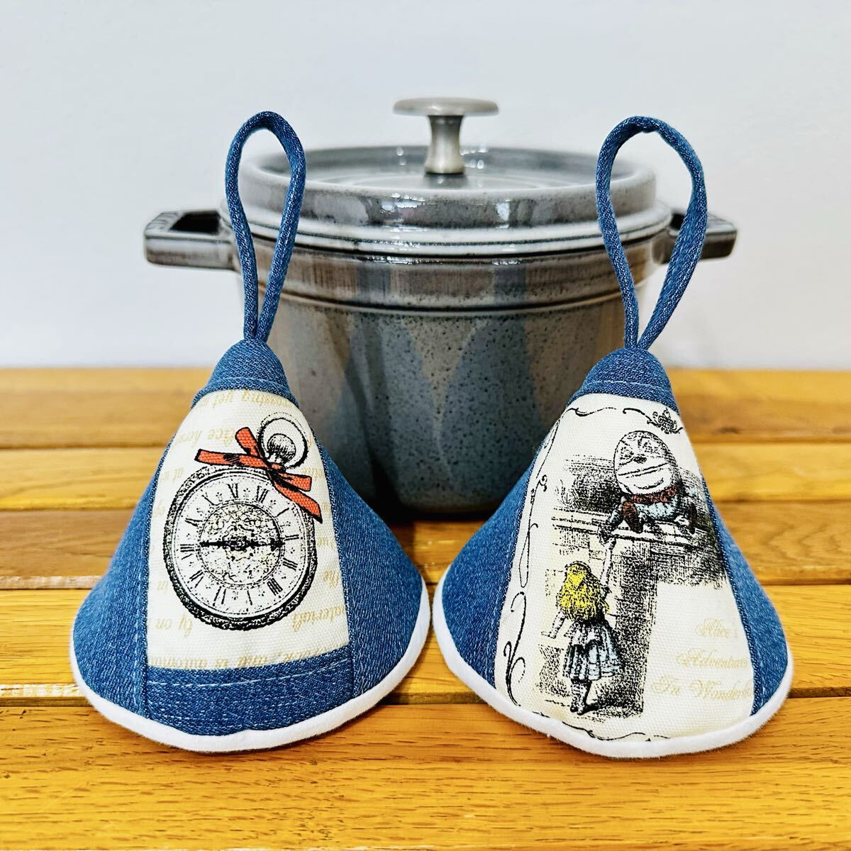 - 三角鍋つかみ★staubストウブホーロー鍋★ミトン★鍋つかみ★デニムリメイク アリス