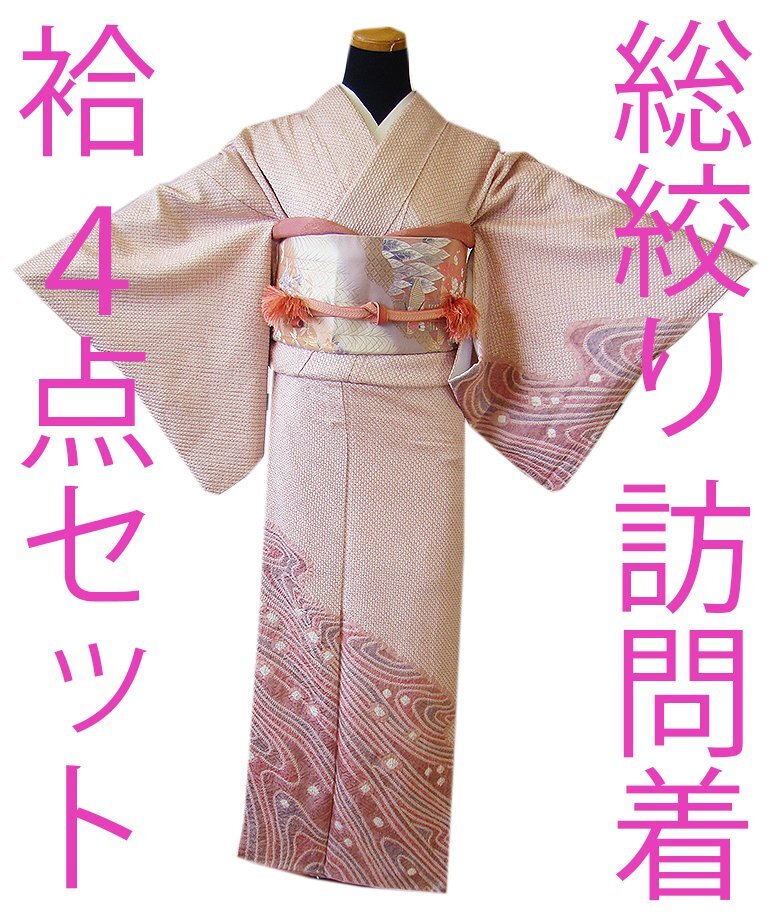 > きものしらゆり 身丈161cm 裄66cm 10~5月 フォーマル 総絞り 訪問着 袋帯 帯揚げ 帯〆 セット 正絹 身長154cm~160cmの方に最適 B464