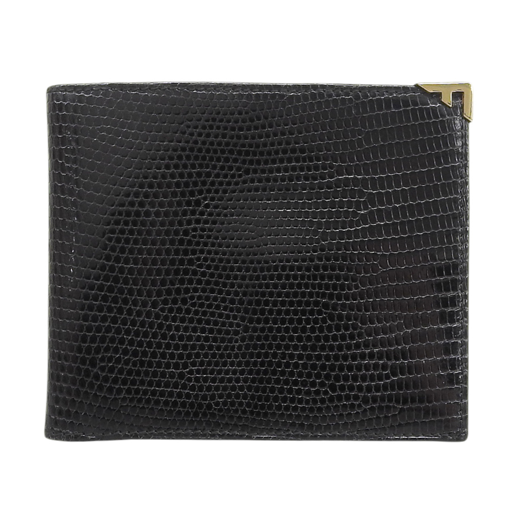 > 未使用 フェラガモ Salvatore Ferragamo デッドストック F型金具 リザードレザー 二つ折り財布 黒 メンズ
