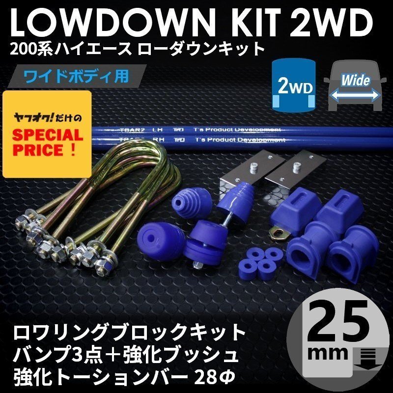 - SALE ハイエース 200系 2WD ワイド ローダウンキット9(25mm(1インチ)バンプ3点 強化ブッシュ 強化トーションバー28Φ)(1型~7型)