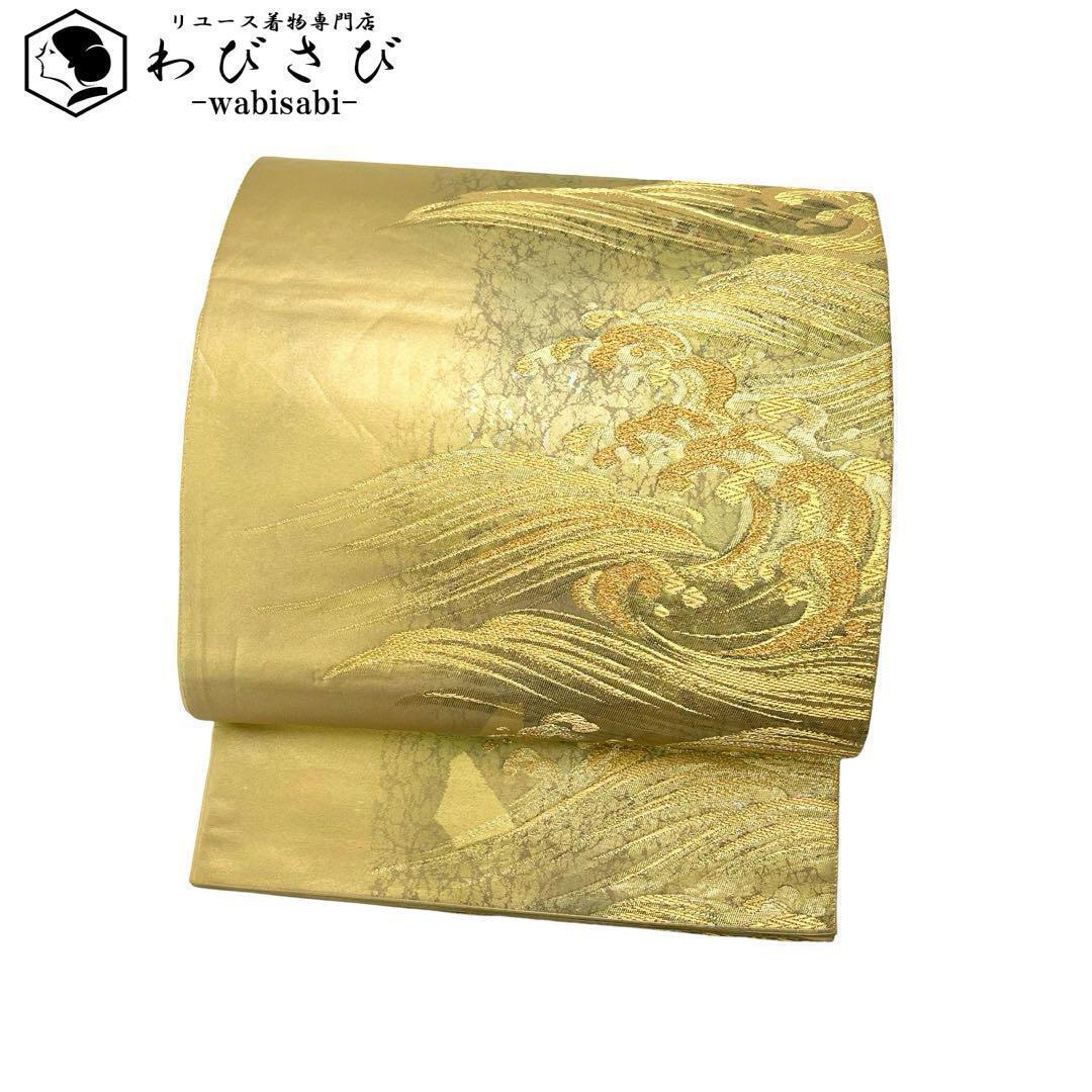 - 袋帯 煌びやかな荒波模様 引き箔 金色 O-3719 着物 きもの kimono 和服 和装 中古 リサイクル着物 【送料無料】