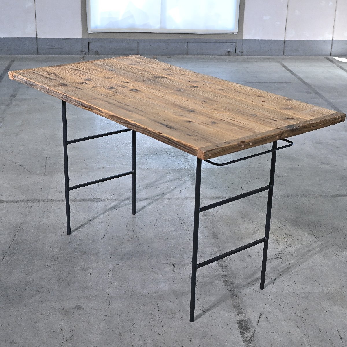 - 展示品 杉山製作所 11万「FACT」ダイニングテーブル ワーク 作業 机 杉 無垢 古材 アイアン脚 インダストリアル リビング ダイニング