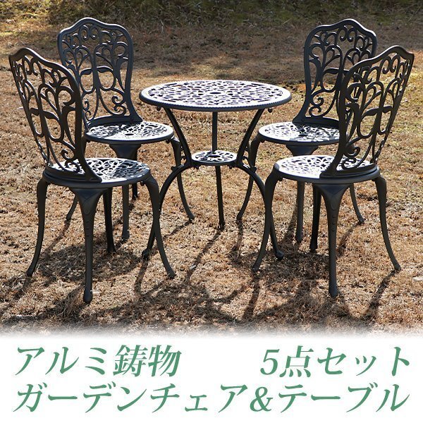 - 送料無料 ガーデン5点セット ブラック アルミ鋳物ガーデンテーブル5点セット ガーデンファニチャー ガーデンテーブルセット ガーデンチェア