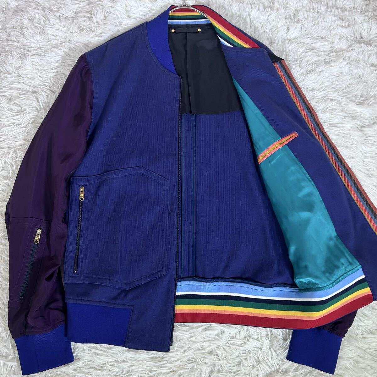 - 【良品】Paul Smith ポールスミス MA-1 ブルゾン ジャケット スウェット素材 袖切替え マルチストライプ Lサイズ メンズ カジュアル 17SS