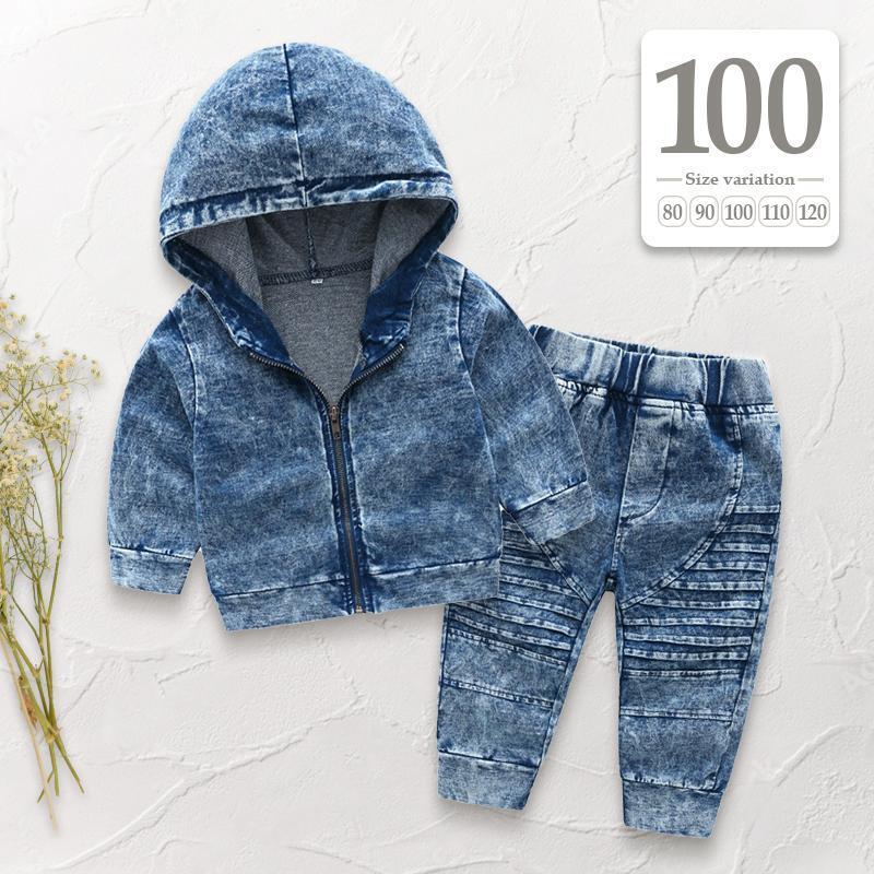 - 新品未使用 100cm ブルー〔#BMデニムセットアップ〕長袖 パーカー デニムパンツ 男の子 女の子 男女兼用 ダンス衣装 子供 キッズ ベビー