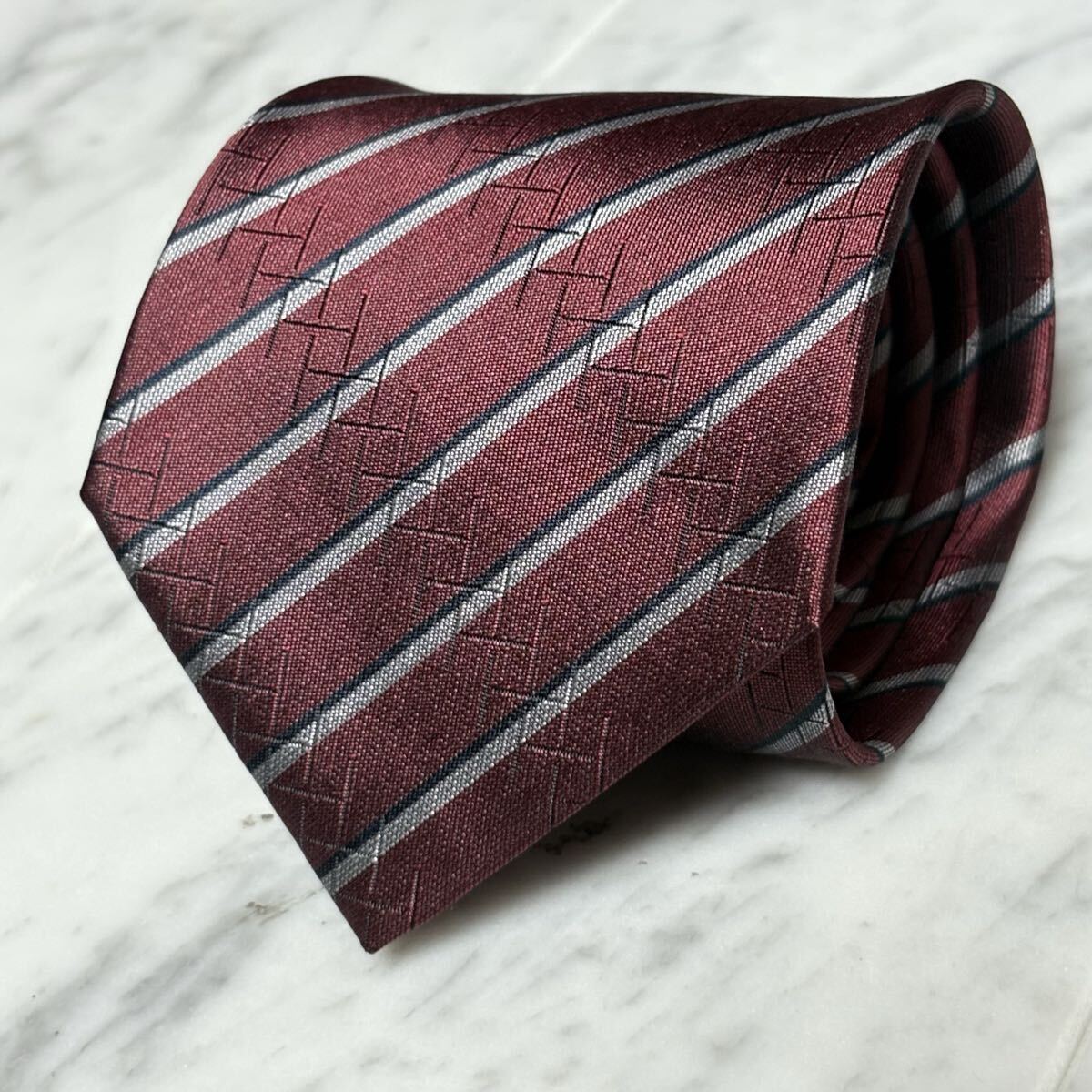 - 【美品】 999円~ ピエールバルマン ネクタイ レッド ストライプ 総柄 (R8)