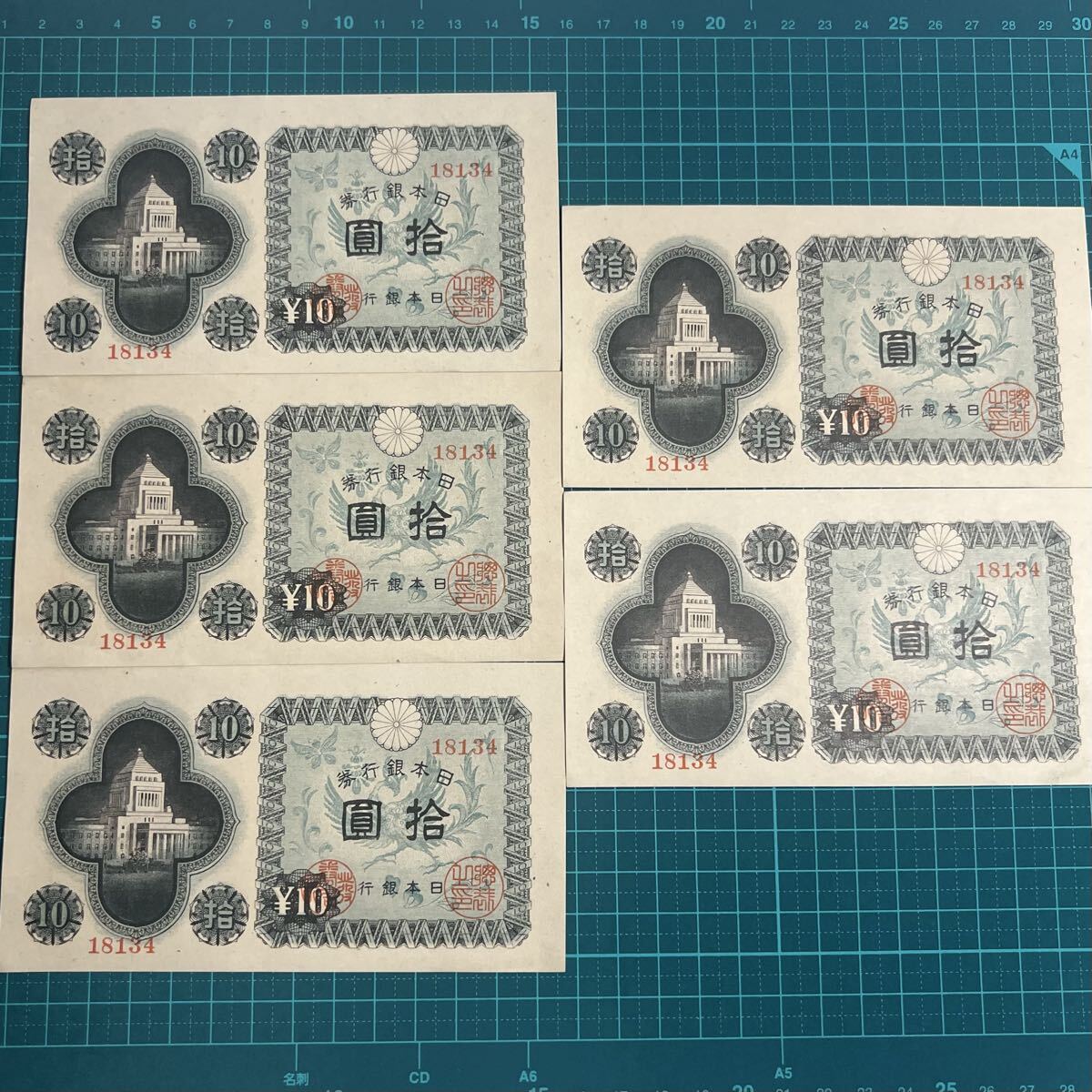 - 新発田(34) 5桁! 日本銀行券A号10円 議事堂10円 ピン札 美品 5枚まとめ