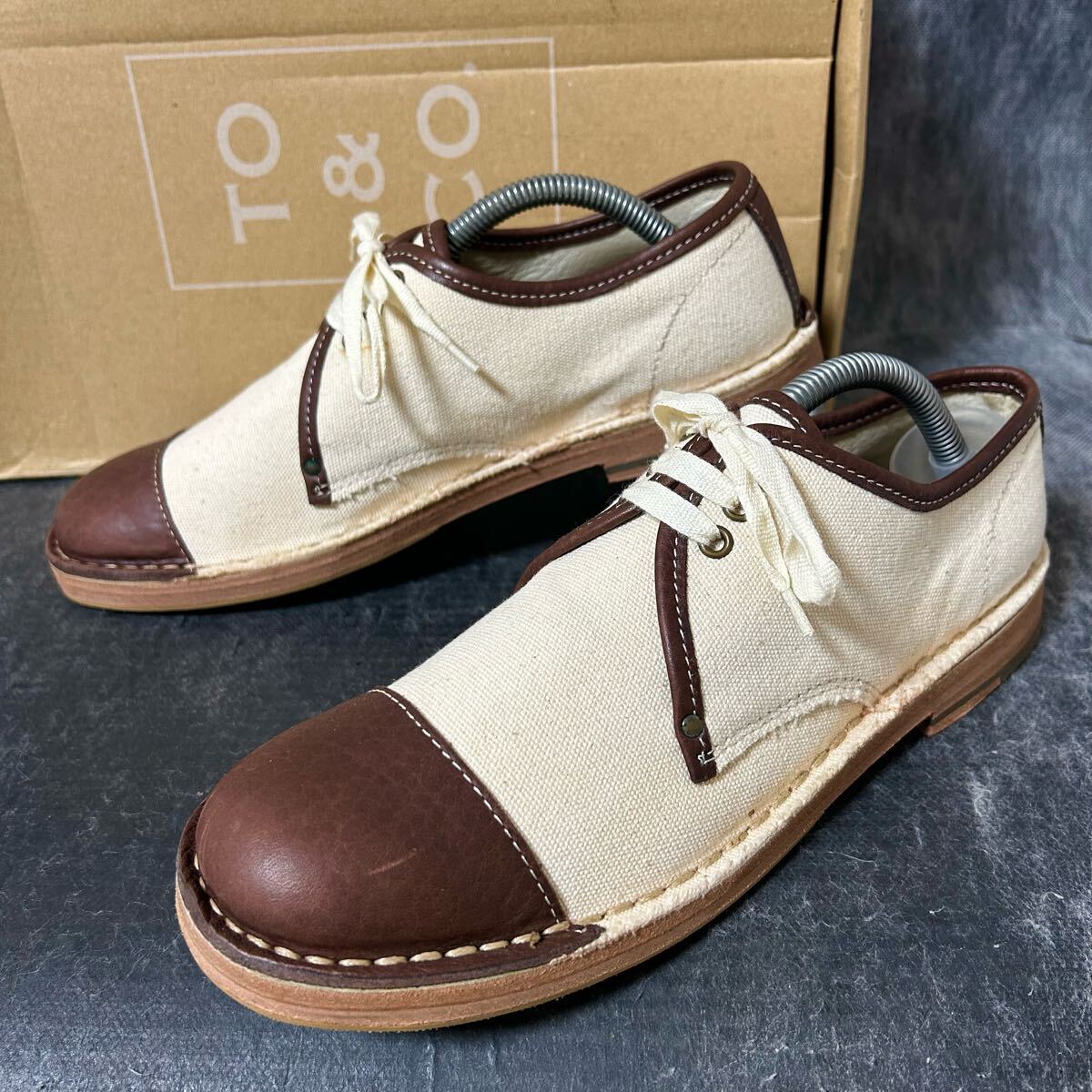- 【新品同様】高級靴 TO&CO. トゥーアンドコー レザーシューズ キャンバス×レザー 371/2 23.5cm相当 ベージュ ブラウン *ET