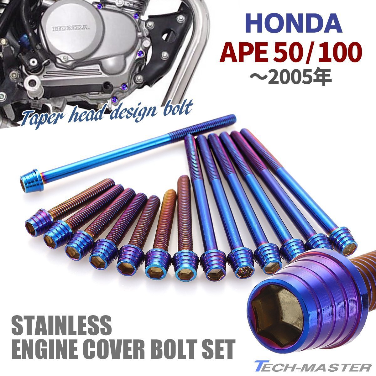 - エイプ50 エイプ100 ~05年式 エンジンカバー クランクケース ボルト 14本セット ステンレス製 ホンダ車用 焼きチタンカラー TB6153