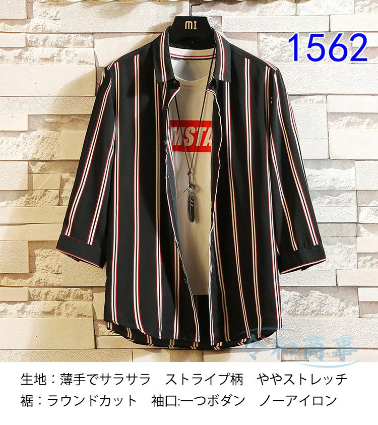> ストライプシャツ メンズ 七分袖 ストライプ柄 白シャツ 七分袖シャツ カジュアルシャツ 半袖シャツ ビジネス 夏 25-81849/1562 L