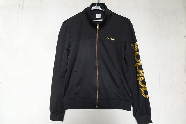 - adidas neo/アディダス/長袖トラックジャケット/ジャージ素材/前ジップアップ/左袖ブランドネームプリント/黒/ブラック/Mサイズ(9/10R7)