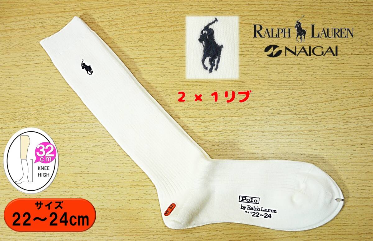 > 【レッグウェア★未使用品】NAIGAI◆POLO Ralph Lauren◆ラルフ◆白 ハイソックス◆2×1リブ◆22-24cm◆32cm丈◆スクールソックス◆OW-NV