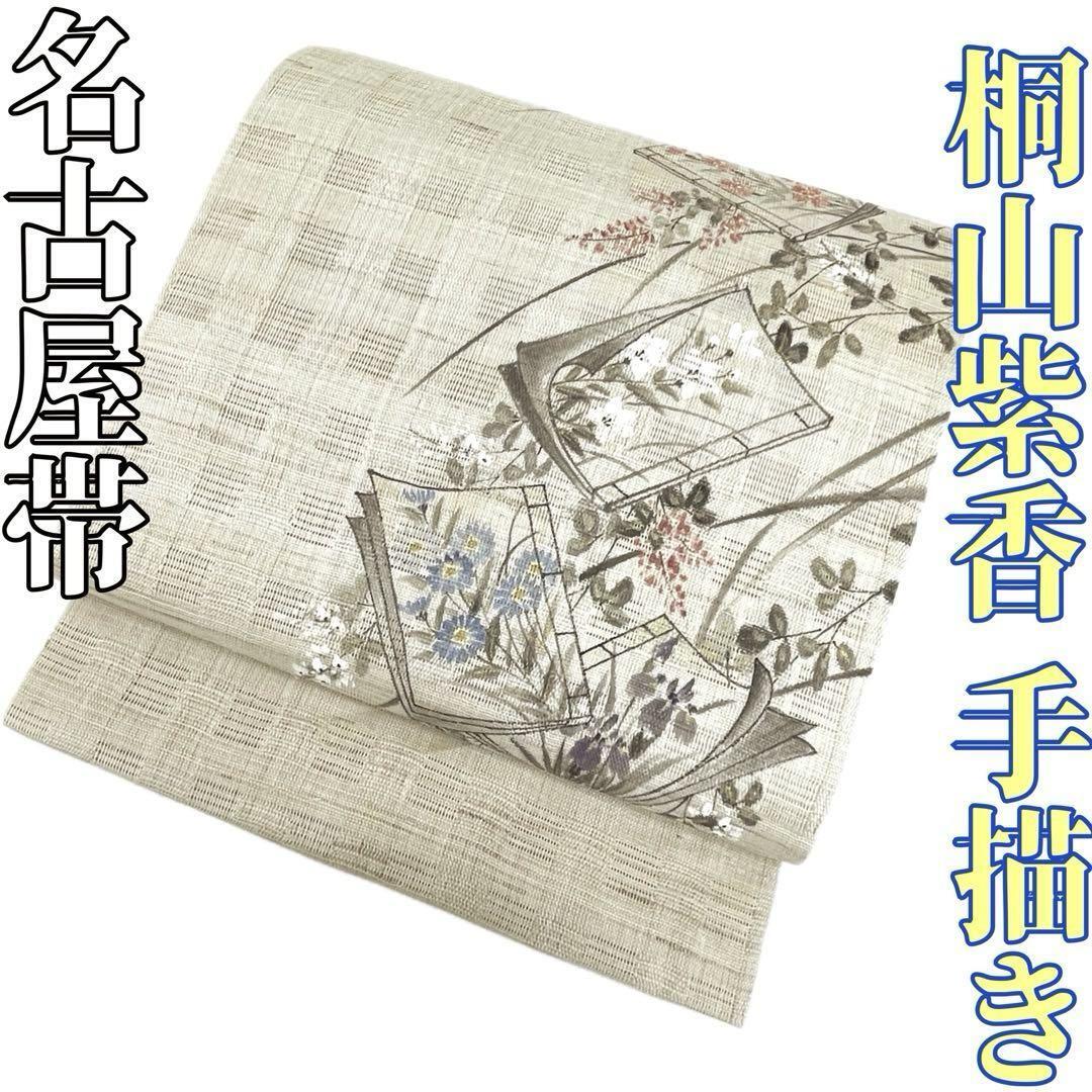 - 【着物と帯 時流】SN25714t◆本麻 九寸名古屋帯◆桐山紫香 友禅手描き美品