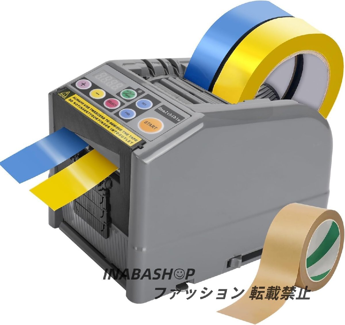 - 自動テープ・ディスペンサー、電動テープ・カッター、最大切断長999 mm、5~60 mm幅のテープ/クリア・テープ/自動モード付き粘着カッター
