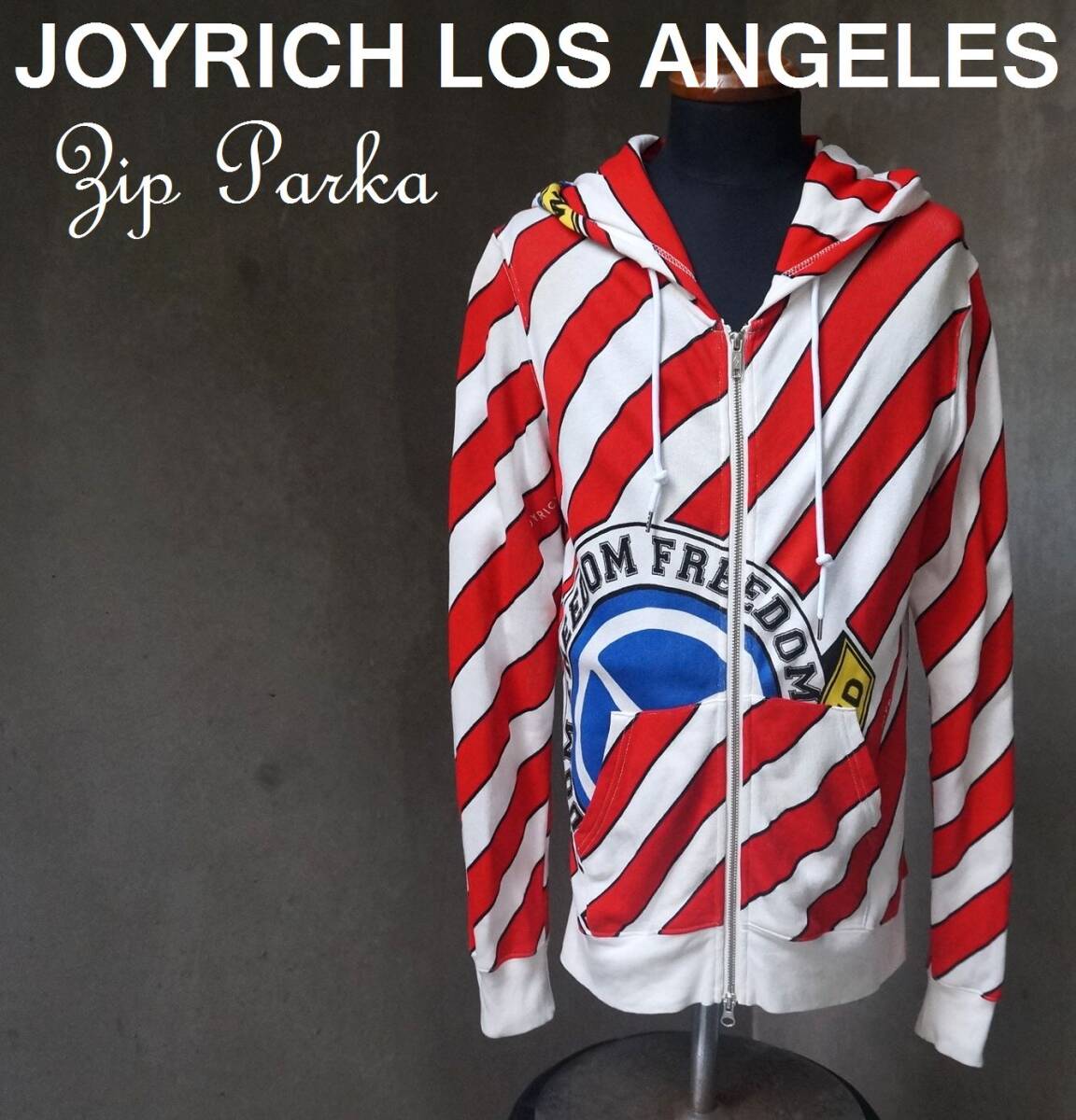 > ジョイリッチ JOYRICH LOS ANGELES 赤白 斜めストライプ ジップパーカー フーディー 表記S 実寸M L相当