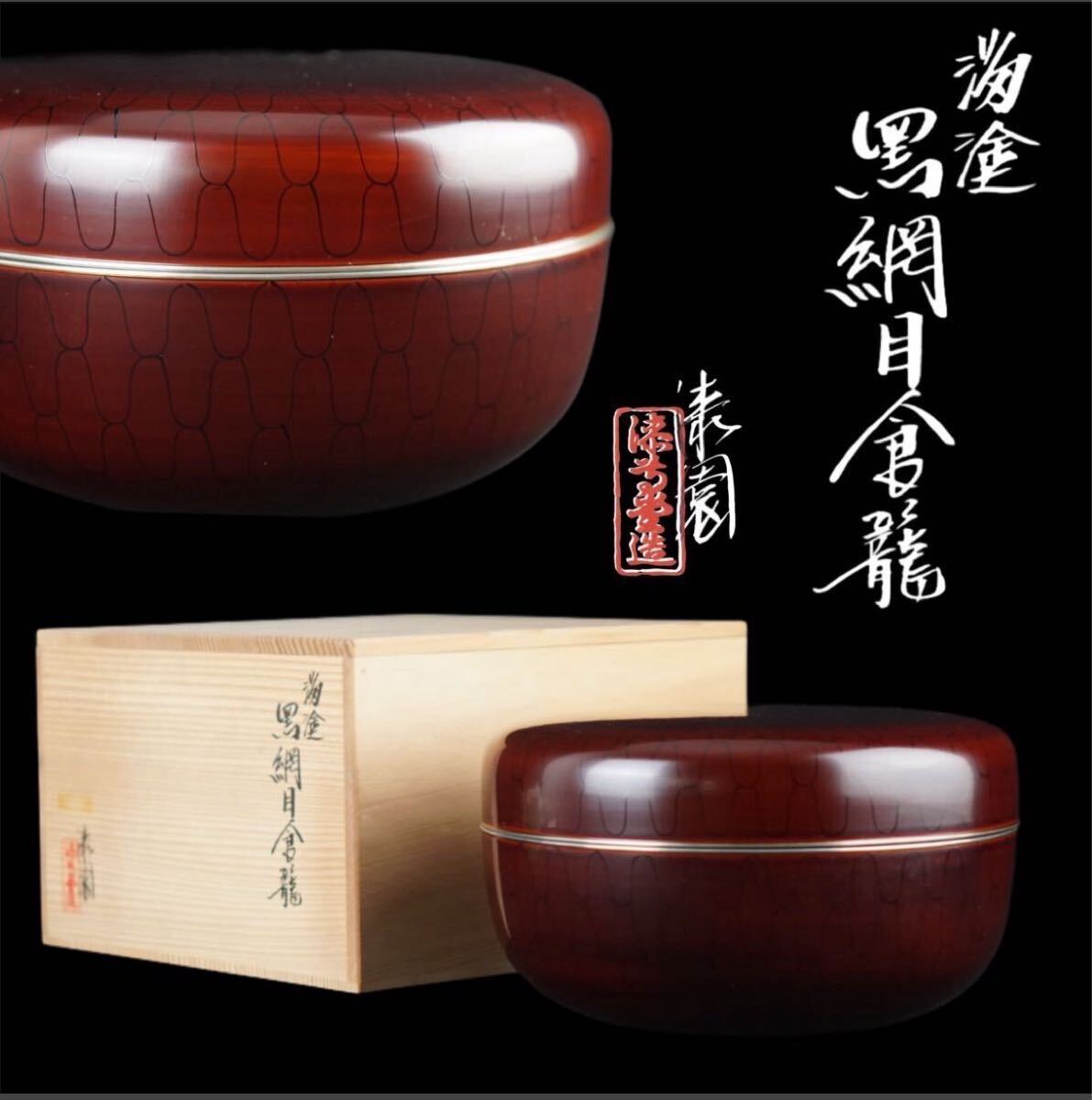 - 漆園 漆専堂 溜塗 黒網目食籠 共箱 菓子器 茶道具 F457