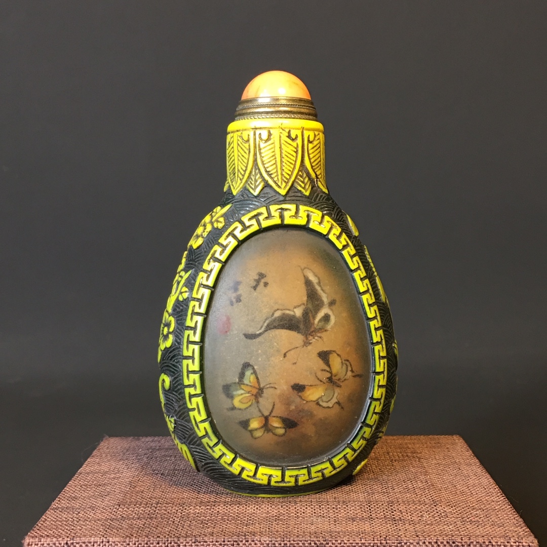 - 9+GV8585「東洋美術」 人間国宝 極細工 古置物 中国古美術 【ガラス製の内側に塗装された嗅ぎタバコ瓶】 旧物 珍品 収蔵価値が高い