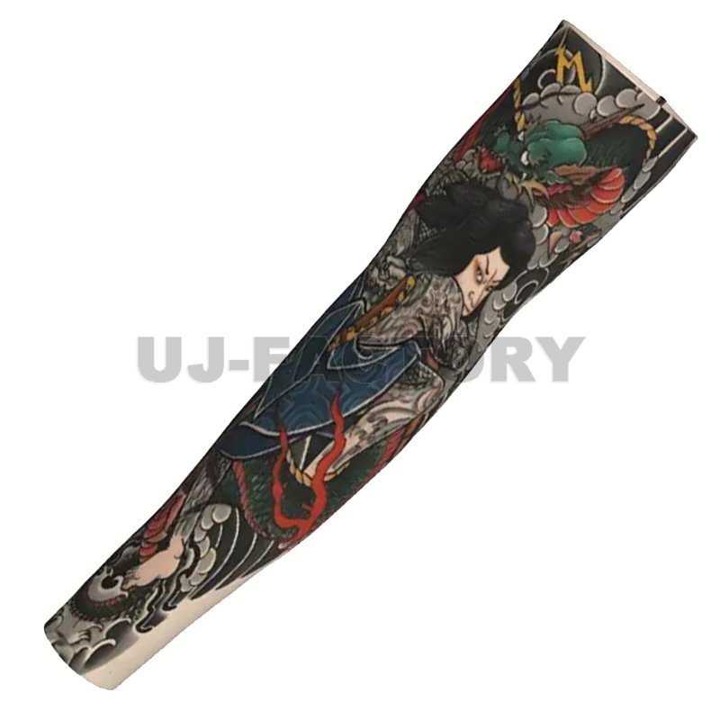 - 【タトゥーアームカバー】★和柄 侍と龍 1枚 和風 和彫 紫外線をブロック 厚手ニットタイプ 腕 フルカバー UV対策 男女兼用 (SSX-ST3)