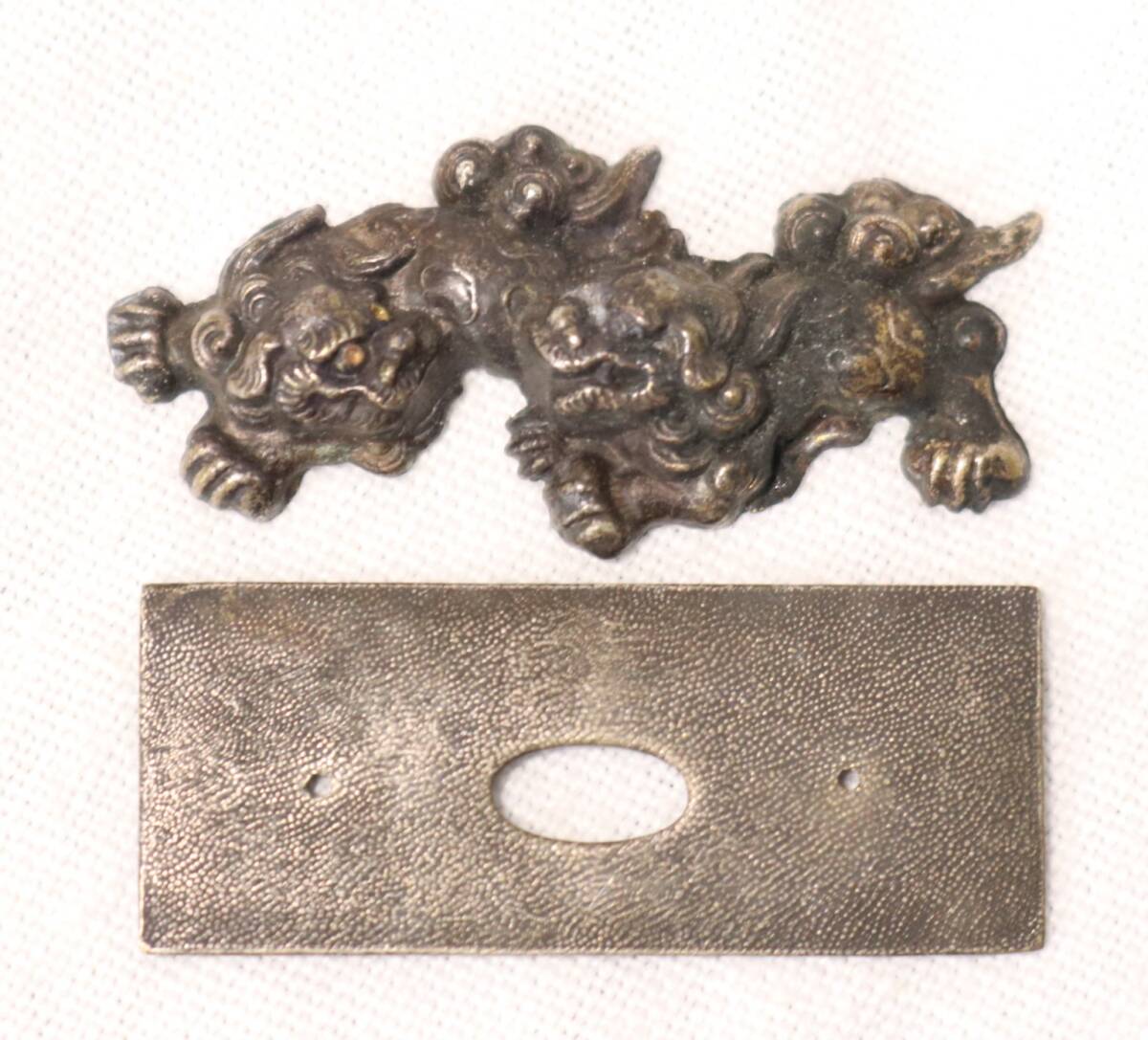 - 時代目貫~唐獅子二体小景~煙草入用 骨董 アンティーク