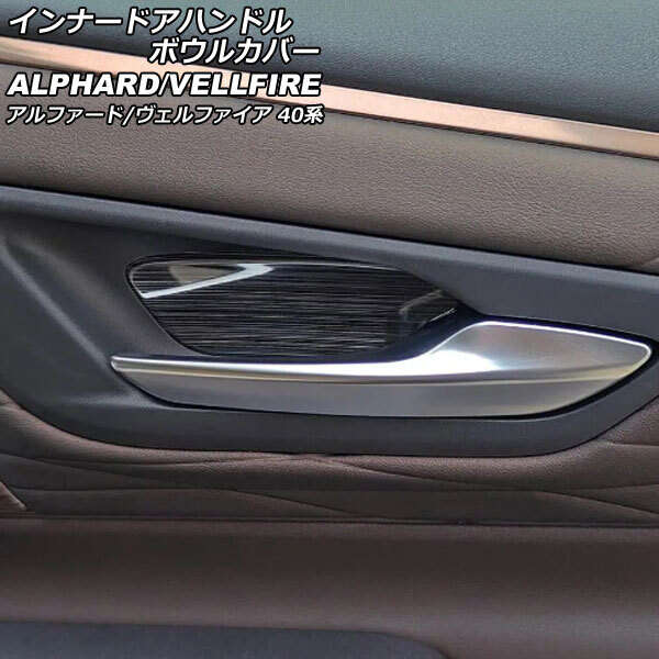 > インナードアハンドルボウルカバー トヨタ アルファード/ヴェルファイア 40系 2023年06月~ ブラック ステンレス製 ヘアライン仕上げ