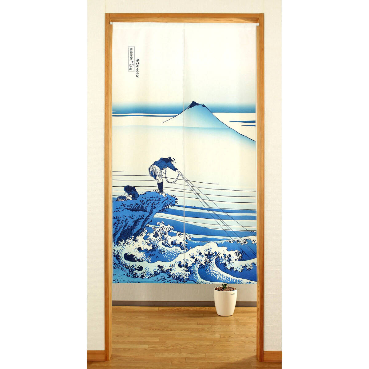 - 暖簾 のれん 浮世絵 甲州石班沢 幅85×丈150cm 藍色 日本製