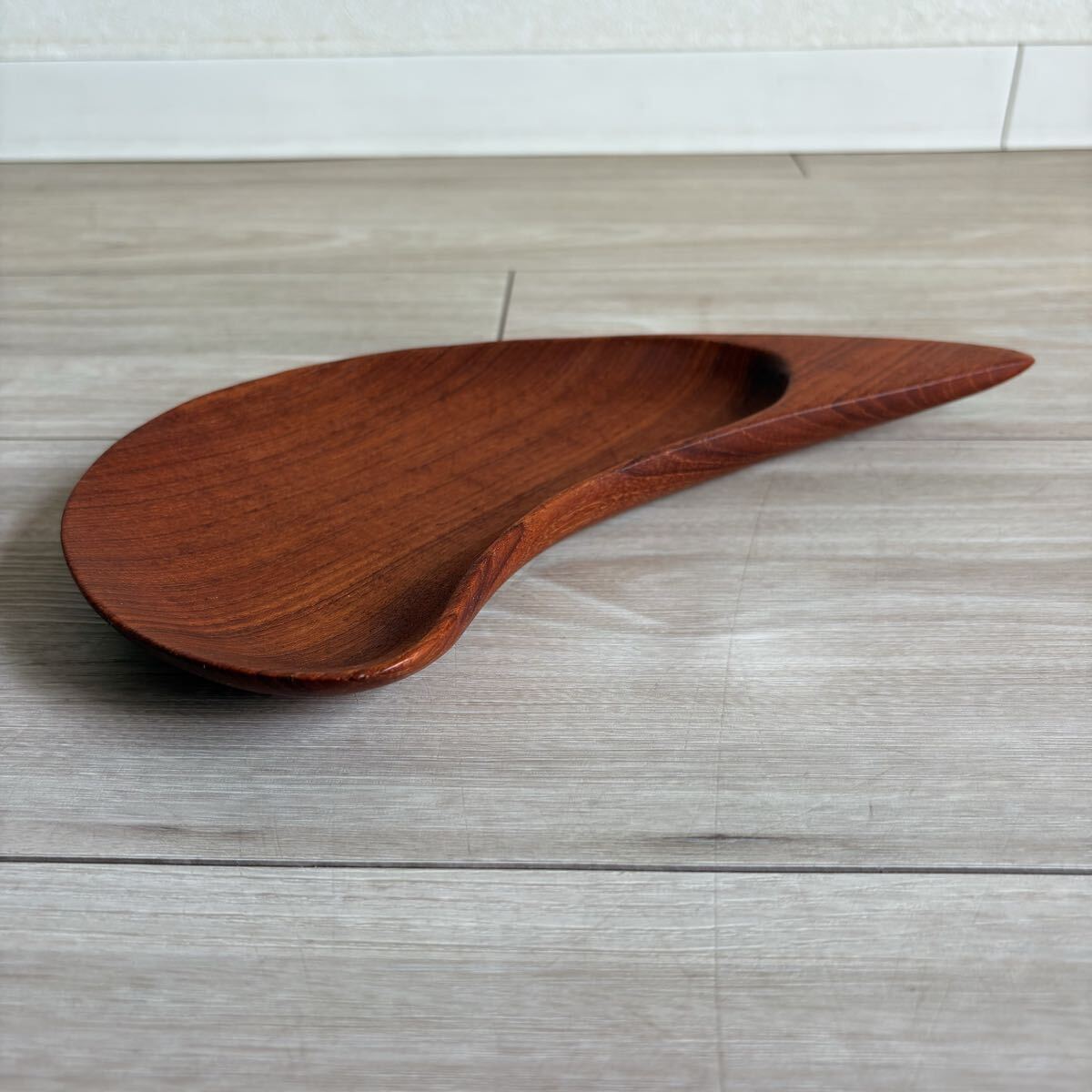 - アメリカビンテージ チーク無垢材 ティアドロップデザイン 削り出しトレイ/ボウル