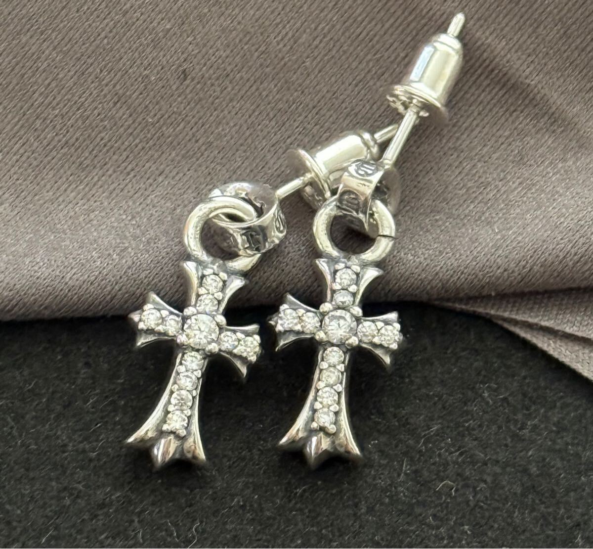 - 両耳 シルバー925 ベイビーファットクロスピアス シルバークロスピアス 人気クロスピアス