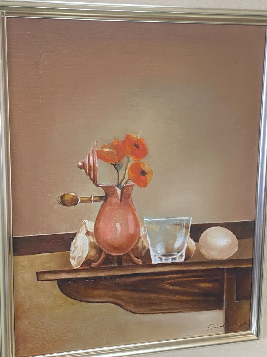 - 真作 油彩画 油絵 渋谷重弘 【静物】 F6号 秋田県 額縁 額装 インテリア