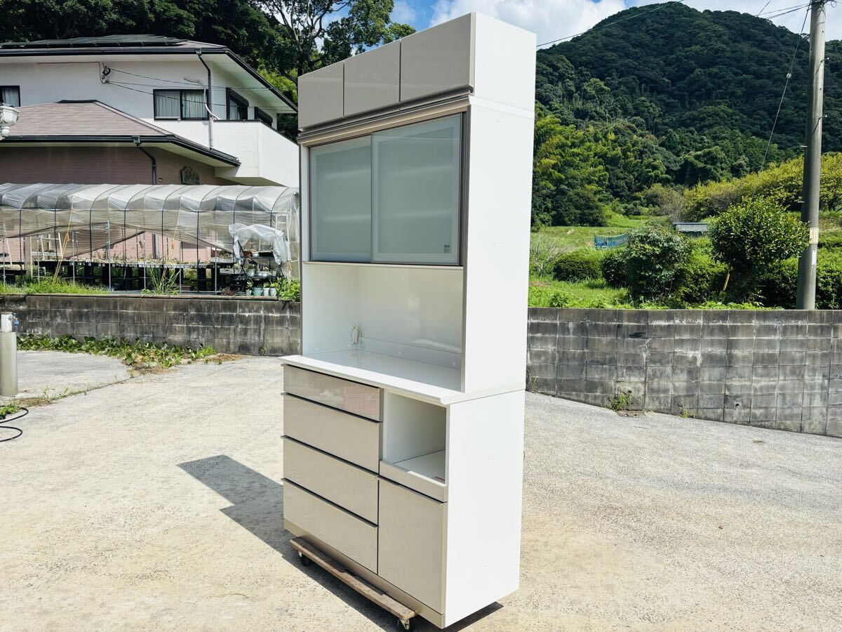 > L80★AYANO★キッチンボード 綾野製作所 Atira/アティラ 中古良品 幅120cm 食器棚 レンジボード 3段式 ソフトクローズ付