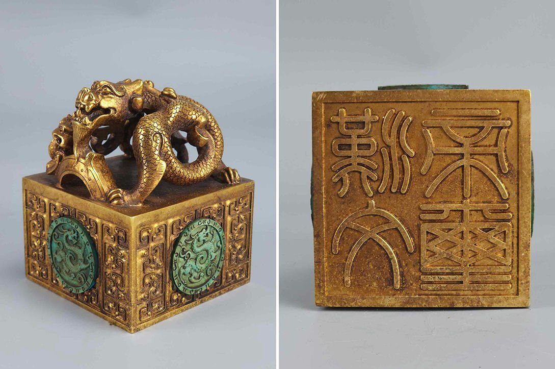 - ◆羽彰・古美術◆Y0737清時代 銅塗金印 細密細工★古置物★古賞物★古擺件★蒐集家放出★唐物