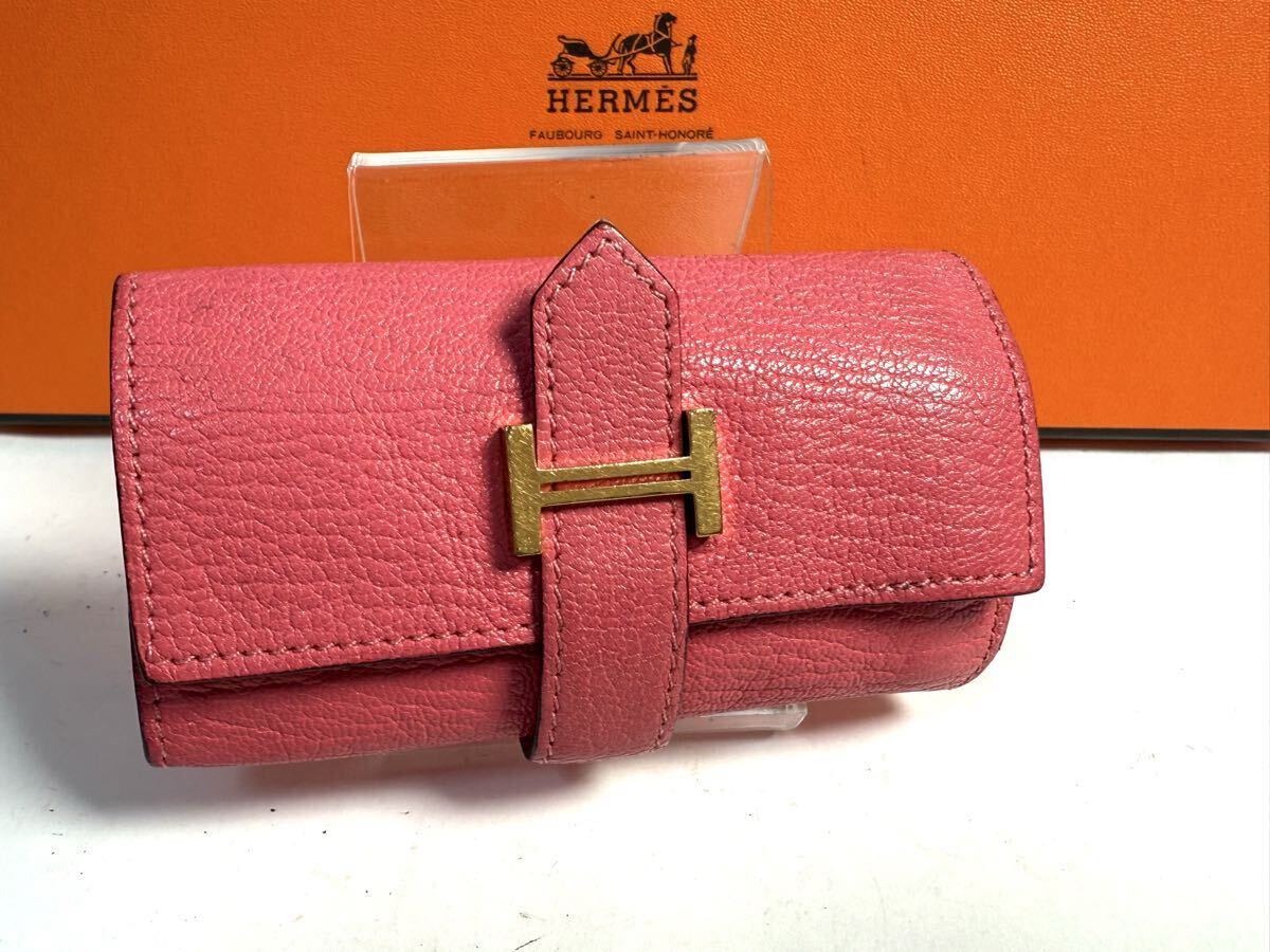 > 874 美品 HERMES エルメス 4連キーケース ベアン ピンク ヴォーエプソン レザー ゴールド金具 Y刻印 レディース メンズ 小物