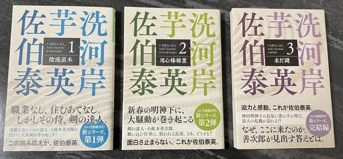 - 『芋洗河岸』 1,2,3巻 佐伯泰英 光文社 文庫本 文庫書下ろし 長編時代小説 神田明神 陰流苗木 用心棒稼業 未だ謎
