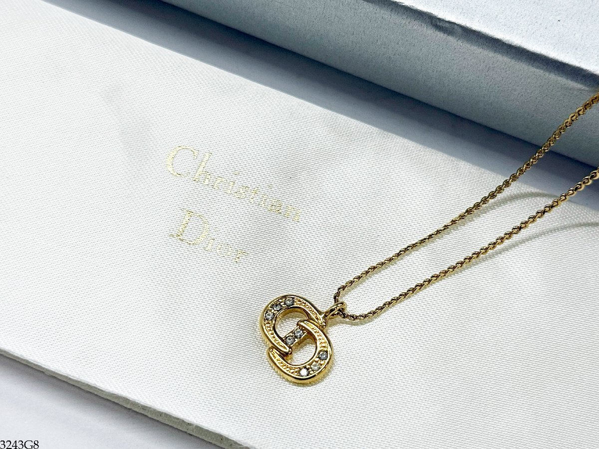 - Christian Dior クリスチャン ディオール ネックレス ストーン CDロゴ ゴールドカラー ペンダント レディース アクセサリー 箱付 3243G8-13