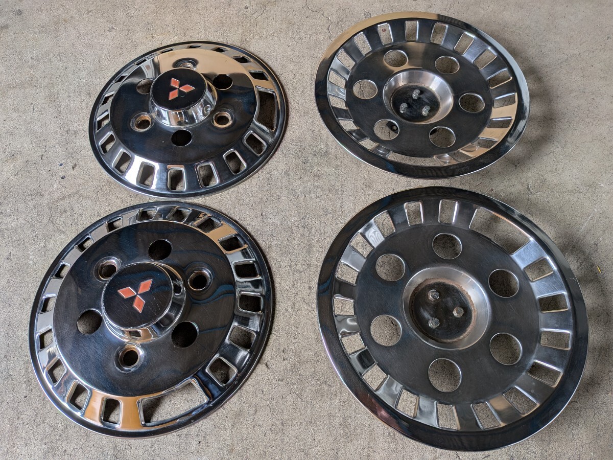 - 当時物 三菱ふそう 19.5インチ 純正 スチール メッキ ホイール カバー リヤブラケット付属 デコトラ