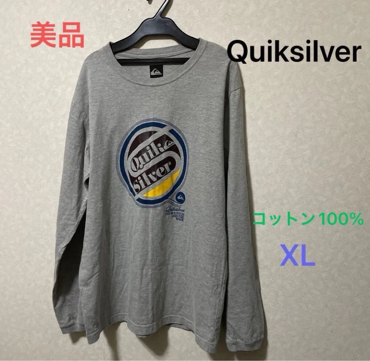 > 美品 クイックシルバー 長袖Tシャツ XL ロンT 長袖 綿100% グレー サーフファッション サーフィン サーファー