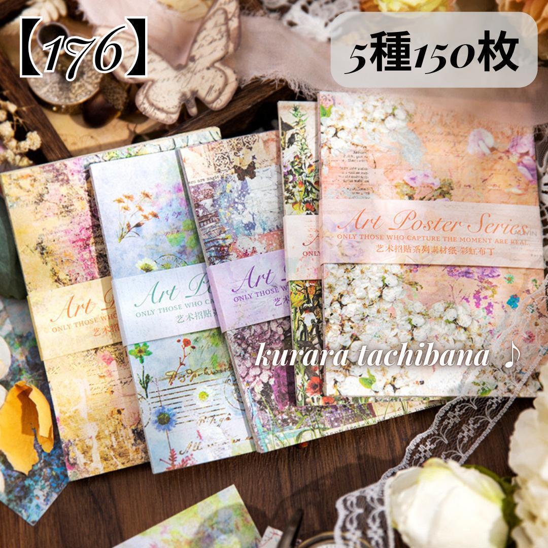 > 【176】素材紙 コラージュ 紙もの デザインペーパー メモ帳 花柄 背景紙 ジャンクジャーナル スクラップブッキング アンティーク 5種150枚