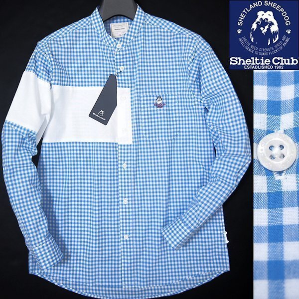 > 新品 シェルティークラブ OXライン切替 バンドカラー シャツ LL 水色 【SH1451112_77_LL】 Sheltie Club 春夏 メンズ オックスフォー