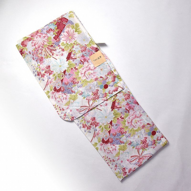 - 【ほりだし堂】 きもの道楽 紅梅 プレタ/お仕立て上がり/仕立済 浴衣 扇子に花々 新品 ポリエステル