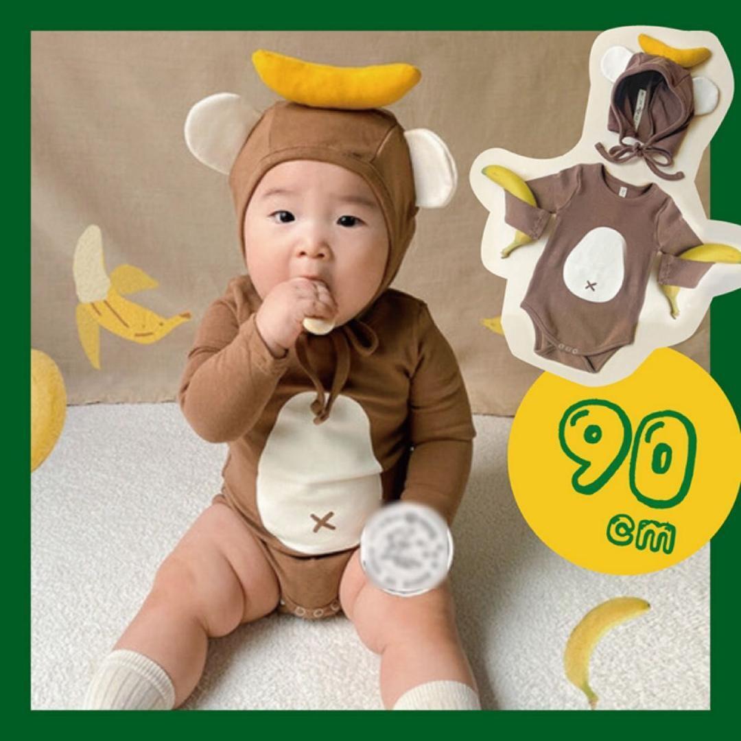 - 90 猿 ロンパース ベビー服 さる モンキー 帽子付き ハロウィン 男の子 女の子 パーティー 仮装 衣装 子供